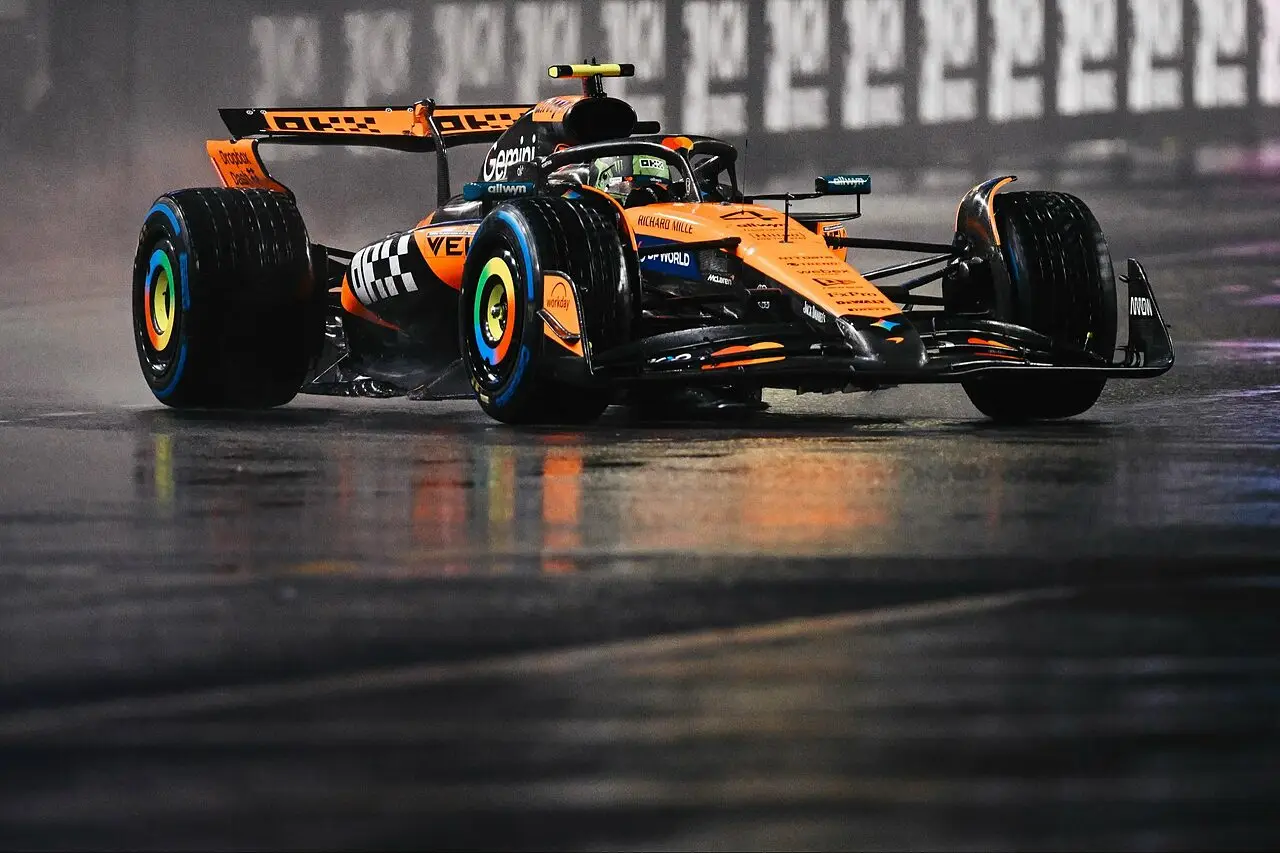 Nella prima qualifica bagnata dell'anno, Lando Norris piazza la zampata vincente nel momento decisivo e si aggiudica la settima pole position della stagione, svettando nella sfida con il cronometro di Las Vegas. Il leader del Mondiale precede Max Verstappen, mentre Oscar Piastri non riesce ad andare oltre il quinto tempo. Sorprende Sainz con la terza piazza, mentre la serata in Nevada si rivela un disastro per la Ferrari, con Leclerc nono e Hamilton addirittura ultimo.