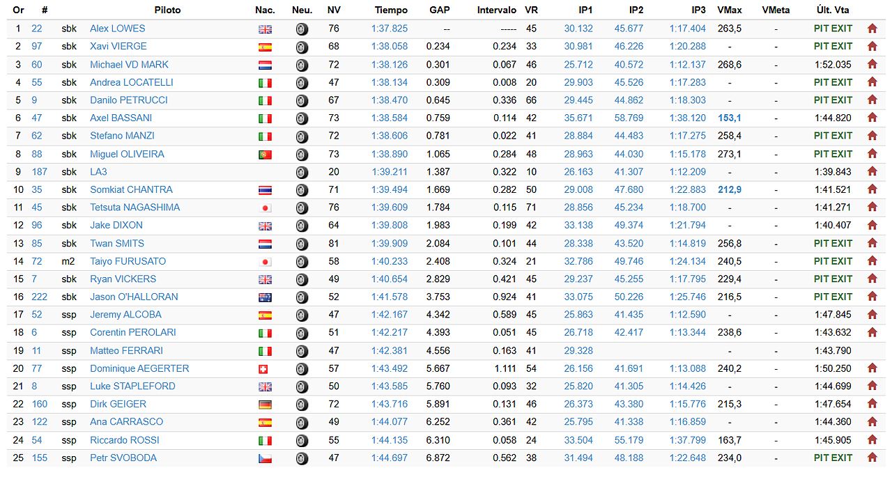 Dietro Petrucci ci sono altri due italiani: Axel Bassani ha avuto modo di conoscere Uri Pallares in questa giornata, il suo nuovo capo-tecnico per il 2026 al posto di Marcel Duinker. Stefano Manzi continua l'ottimo adattamento alla massima categoria delle derivate dalla serie, piazzandosi proprio davanti ad Oliveira. Tanta curiosità anche per il team HRC completamente rinnovato: a sorprendere è Somkiat Chantra che, dopo un'unica stagione di MotoGP da dimenticare tra infortuni e scarsa competitività, può rilanciarsi del WorldSBK. Il thailandese è stato il più veloce del plotone di Tokyo davanti al tester Tetsuta Nagashima e il nuovo compagno di squadra Jake Dixon. Lato WorldSSP, invece, Kawasaki vuole essere protagonista: la formazione guidata da Manuel Puccetti chiude rispettivamente al primo posto con Jeremy Alcoba e al terzo con il neo-arrivato Dominique Aegerter. Tra i due si infila Matteo Ferrari sulla Ducati del team WRP.