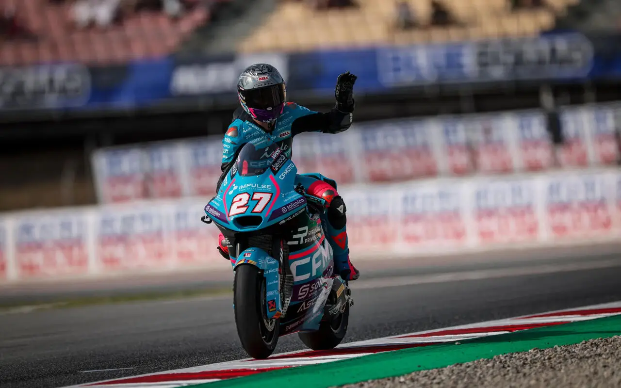 Con Holgado fuori dal raggio d’azione per chiunque, il secondo posto è stato affare solo di Jake Dixon e Daniel Muñoz, con l’esperto pilota britannico di Marc VDS che ha dovuto sudarsela con il giovane sostituto del team Ajo, riuscendo a spuntarla solo negli ultimi due passaggi. Un risultato comunque di grande prestigio per lo spagnolo classe 2006 che, dopo essersi messo in luce nel campionato europeo e diverse comparsate da sostituto (inclusa questa), ha dimostrato di meritarsi il passaggio a tempo pieno nel prossimo Motomondiale.