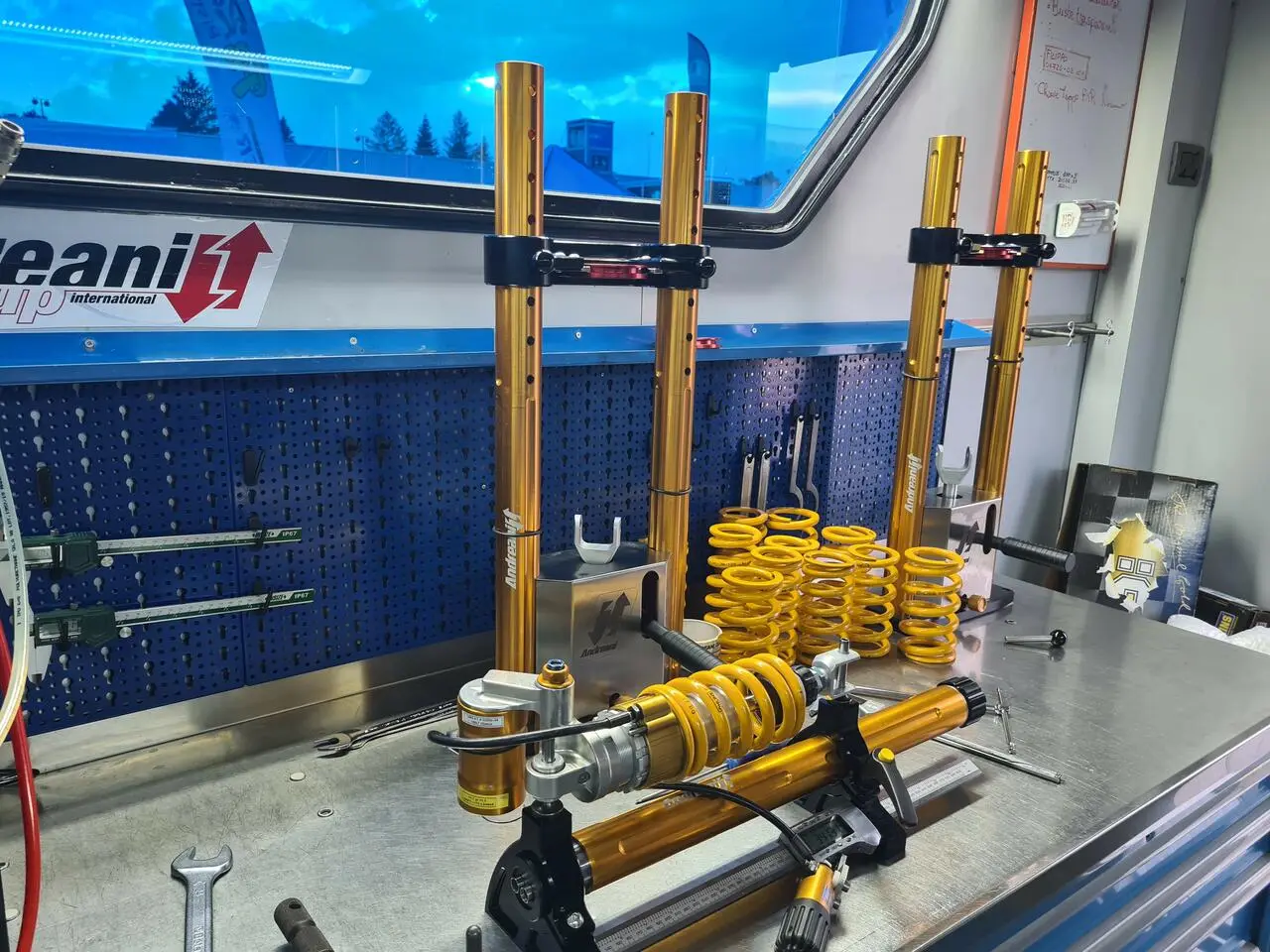 Tra utensili specializzati, smonta molle, pompe spurgo e attrezzi di misurazione per forcelle, siamo stati ospiti di Andreani in un weekend di gara.