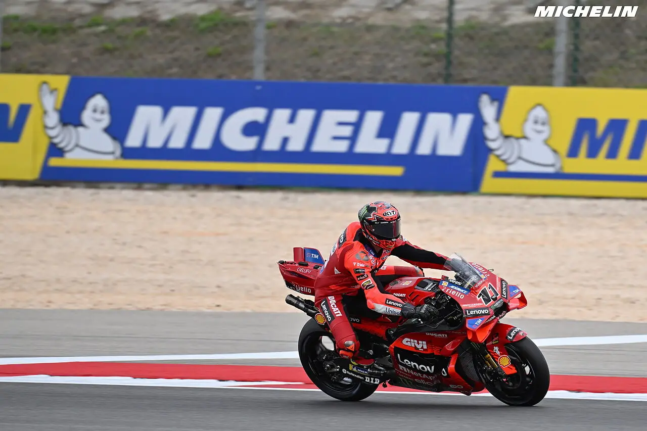 Chiamato per sostituire l’infortunato Marc Marquez negli ultimi due appuntamenti della stagione 2025, Nicolò Bulega è arrivato sul circuito dell’Algarve senza aspettative e con solo un giorno di test all’attivo sulla Desmosedici GP25 disputato in condizioni meteo miste. Il 26enne di Montecchio Emilia, prendendo ovviamente come setup la base usata da Marquez nel corso dell’anno, ha comunque dimostrato fin dall’inizio l’adattabilità e la velocità visti già nella Superbike negli ultimi anni. Nelle FP1, infatti, Nicolò ha superato in fretta i problemi di inesperienza avuti nel primo run, chiudendo la sessione 14° firmando un 1:40.073 nel secondo run con gomme usate sia all’anteriore che al posteriore. A mettere ancora più in risalto la prestazione di Bulega è il fatto che si sia piazzato davanti di oltre due decimi al titolare Francesco Bagnaia (17° dopo una mattinata in netta difficoltà) con un tempo sopra di meno di un secondo dal miglior riferimento firmato da Alex Marquez.